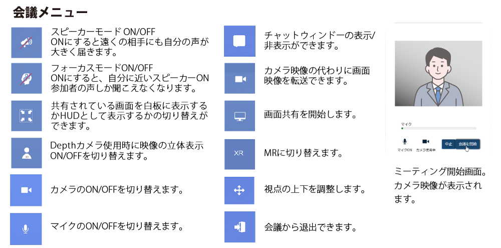 例えば、会議室へ行くと、入った人同士で自動的にビデオ会議が始まります。離席するとカメラが自動で判別し、アバターが休憩室に移動し、戻るとオフィスに着席します。