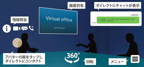 3DVR空間とアバターを介したコミュニケーションツールを用いて、バーチャルオフィス・ショールーム、