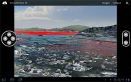 VR-Cloud®で公開中のxpswmm津波解析データはAndroid対応スマートフォンでも閲覧可能(右下):