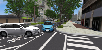 UC-win/Roadで作成されたデジタルツイン環境における運転シミュレーションのシーン