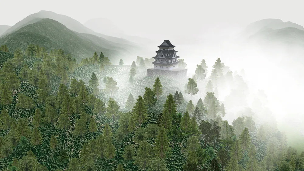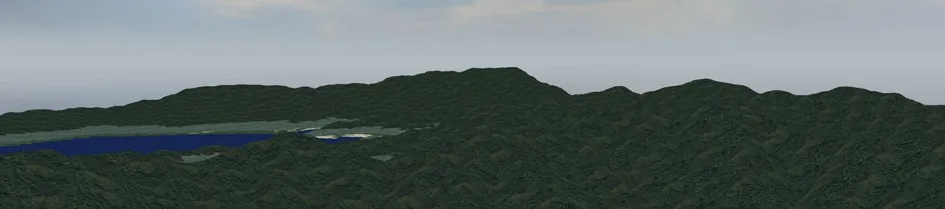 遠景の山なみなども視点場から見える標高が高い領域を含めて地形生成を行うことにより、移動景観上でもリアルな地形を表現することができます。