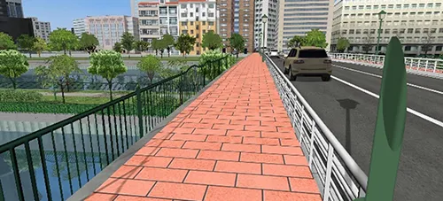 道路断面で設定したガードレールの高さがVR空間では思ったとおりの高さになっていない場合、ガードレールのテクスチャによって、断面の高さを調整する必要があります。
