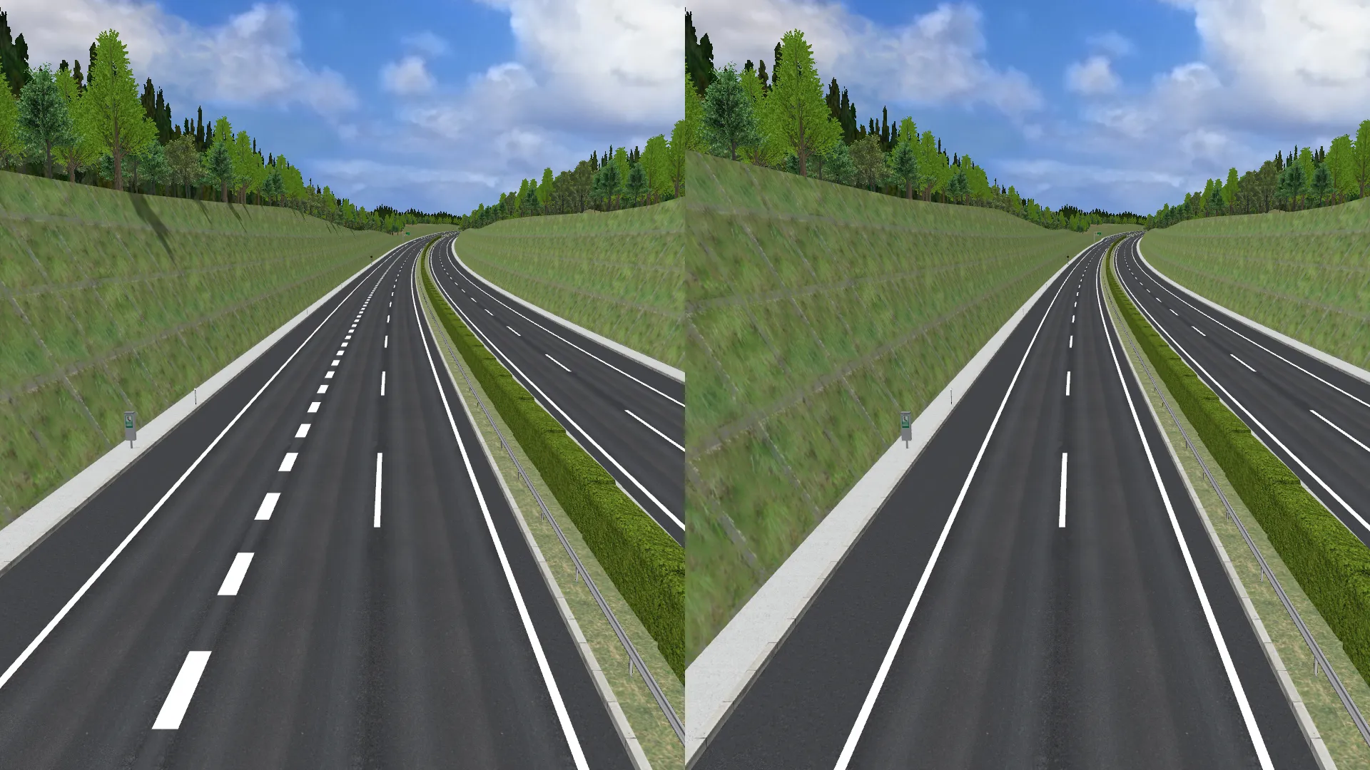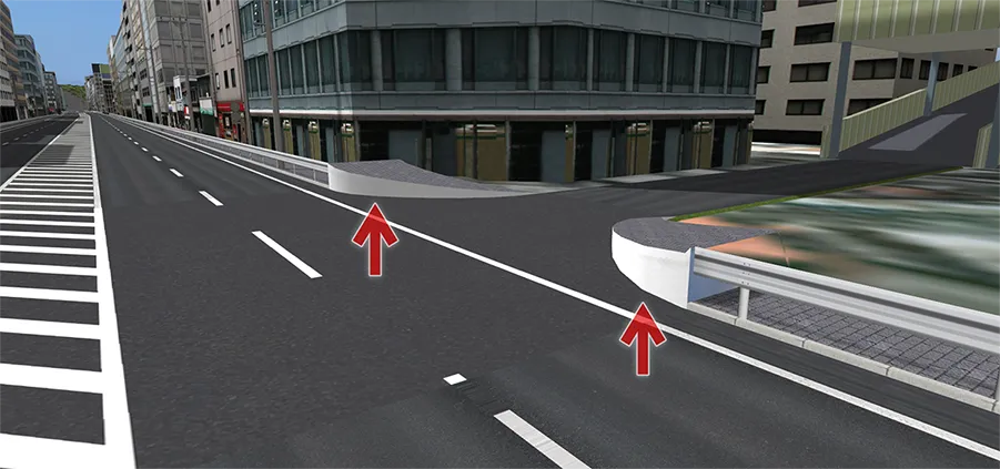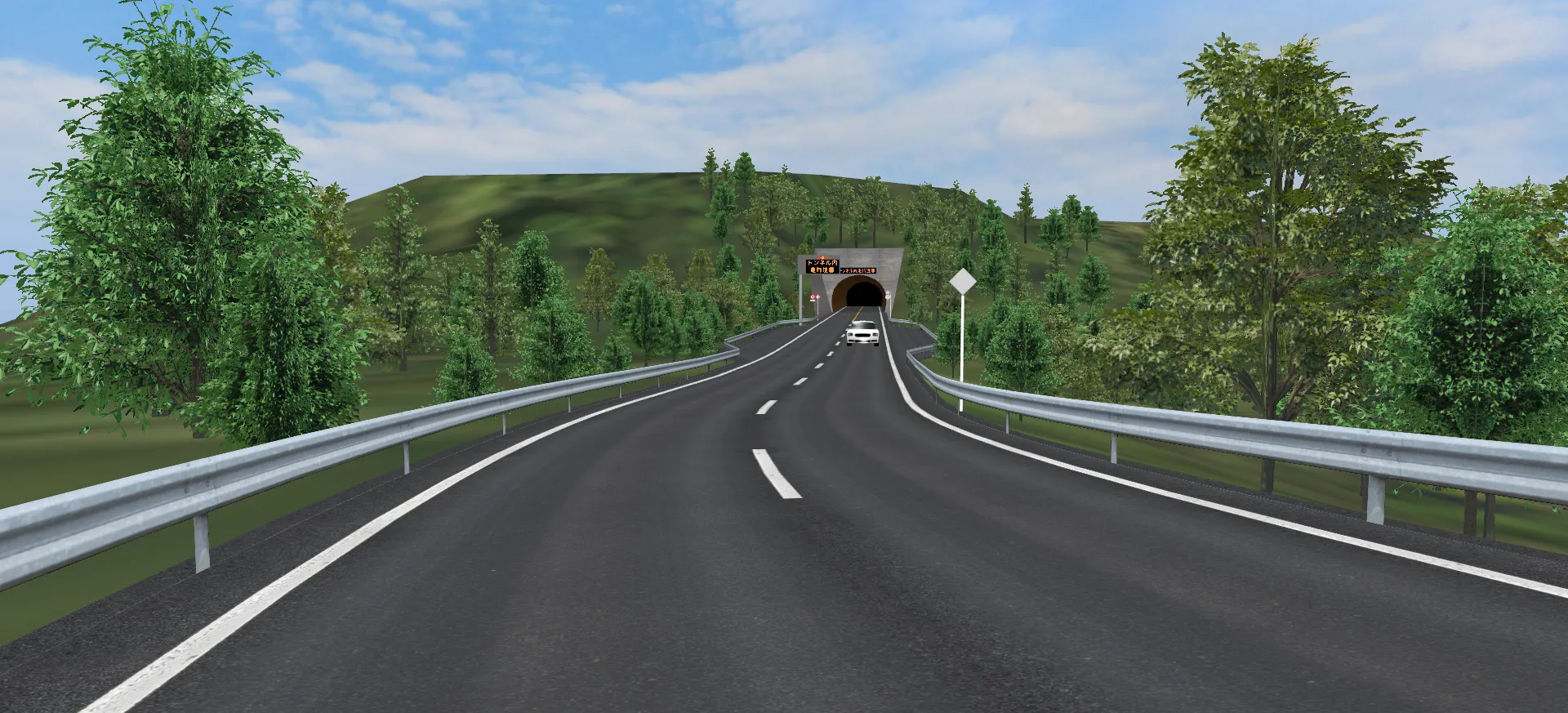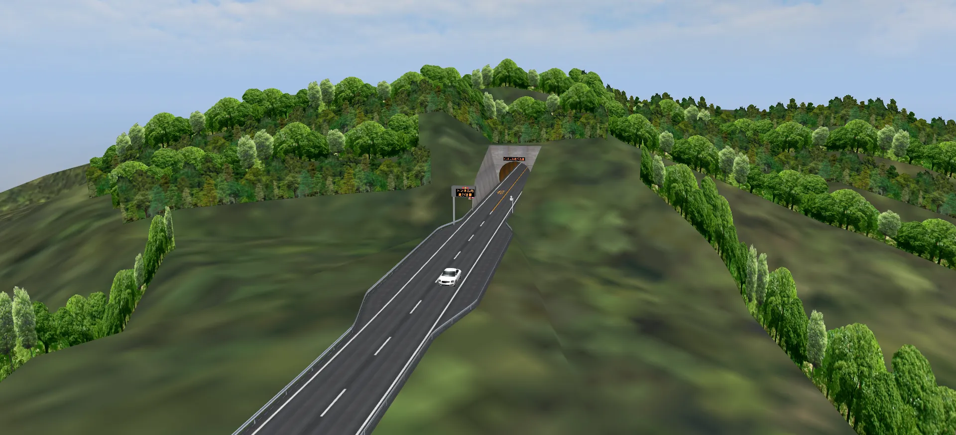 首都高速道路の一部区間をイメージしたデータです。ドライビングシミュレーションのために高パフォーマンスな表示を可能としています。