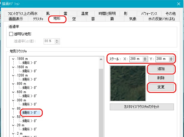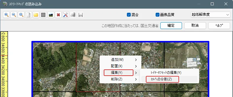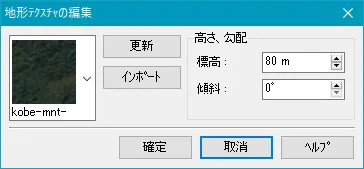 読み込んだ地形データを見て航空写真が粗い場合は、画像解像度を調整することができます。