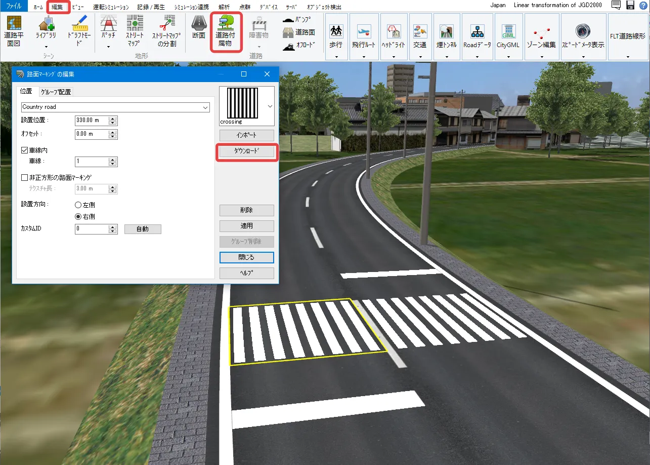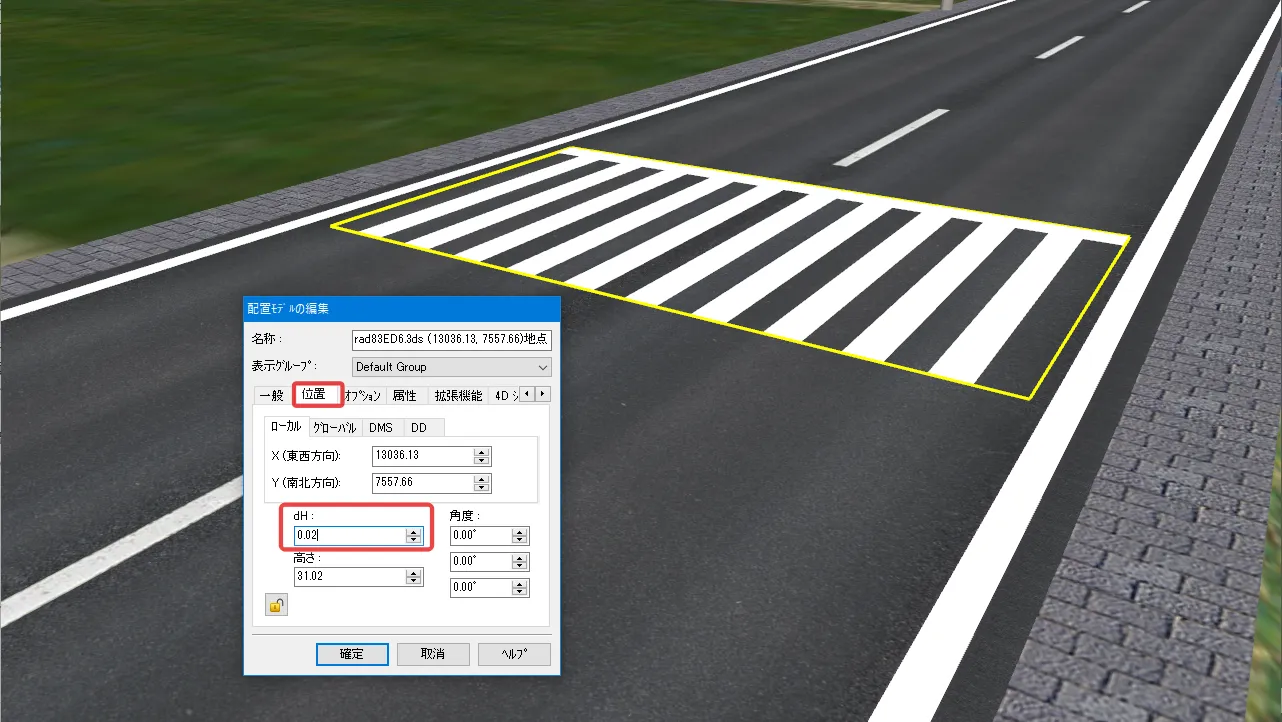 UC-win/Roadからエクスポートした3Dモデルや、他のソフトで編集してグローバル座標(平面直角座標系)を持つ3Dモデルを、簡単に座標値を基準に配置する方法があります。