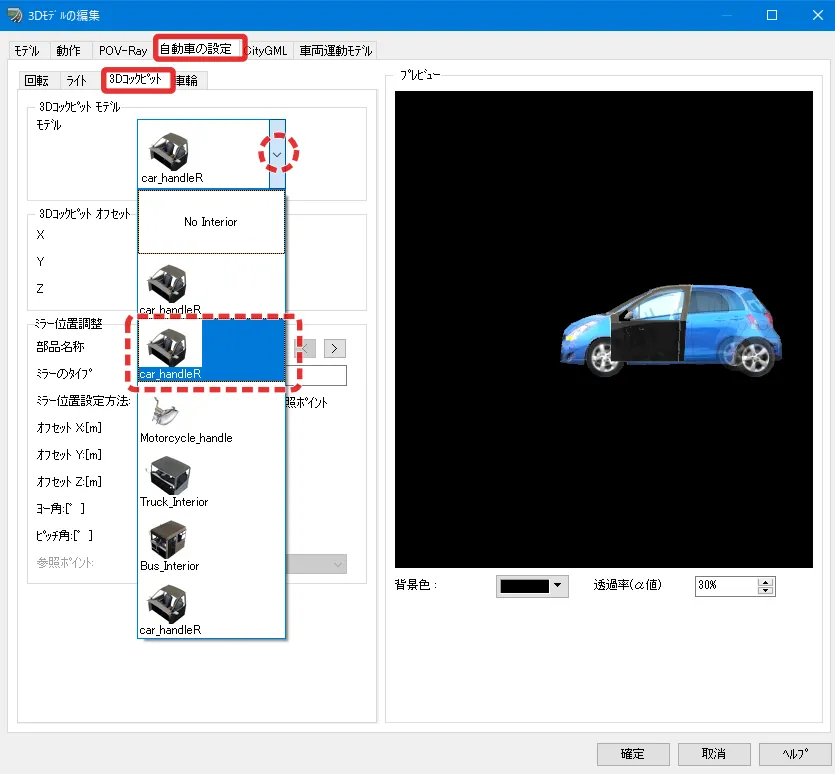 追加した車両の「自動車の設定」で動作プロファイルを特定車両プロファイルにして確定します。