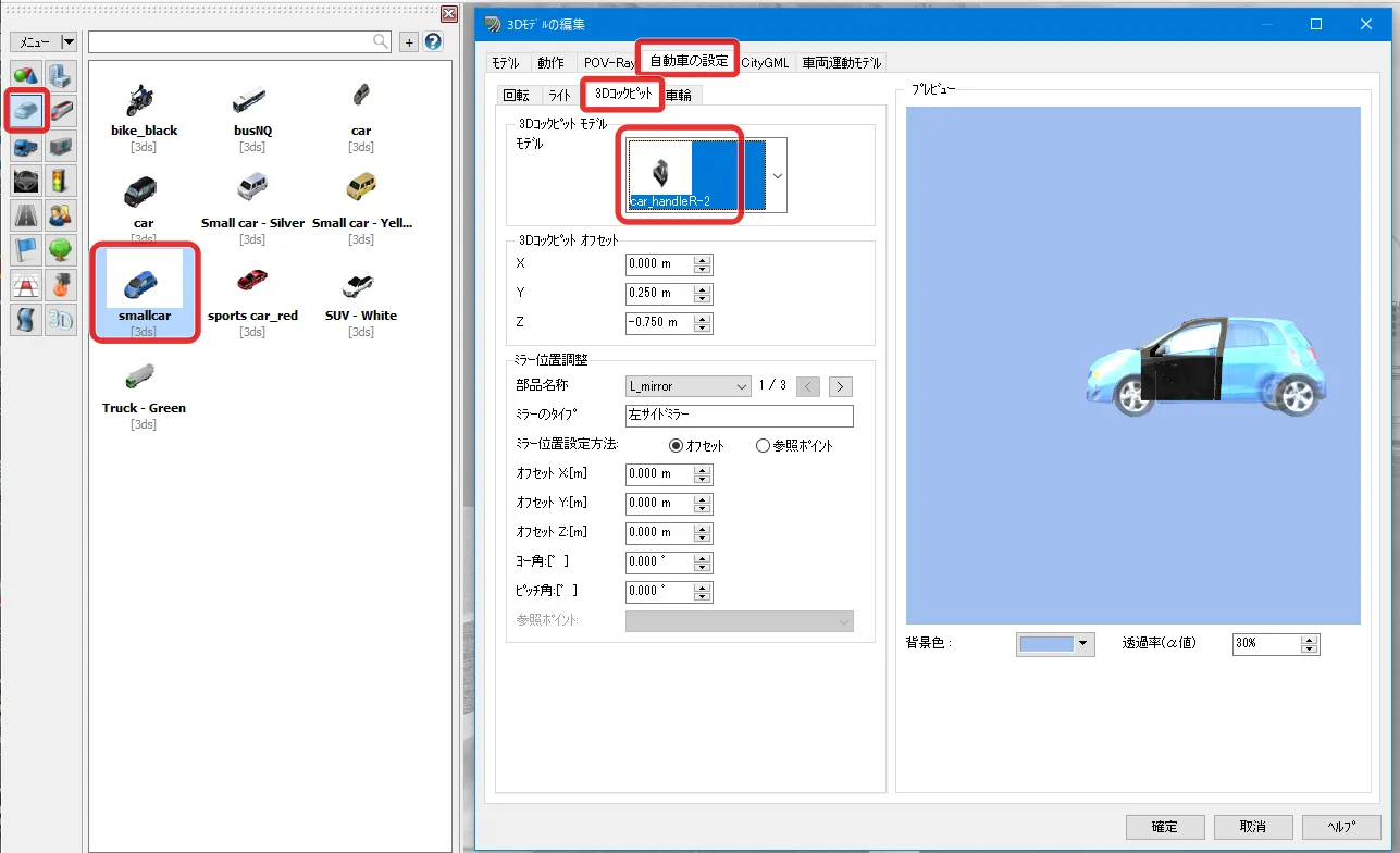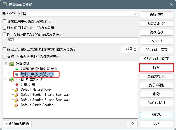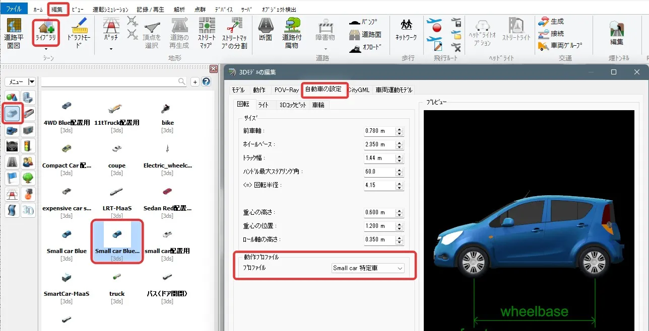 「ライブラリ」で特定車に該当する車両を複写や読み込みにより追加します。