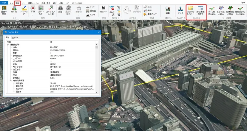 国土交通省が整備する3D都市モデルプロジェクト PLATEAU(プラトー)のデータフォーマットCityGML形式モデルを読み込むメニューは2つあります。