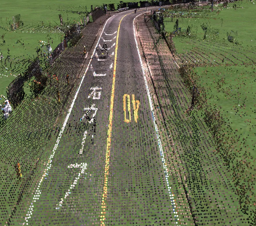 読み込んだ点群に色が表示されない場合、データの色強度情報がパラメータ設定値の範囲外になっている可能性があります。テキスト形式の点群データの場合は、メニュー「点群」-「オプション」-「インポート」のRGB情報(赤色強度/緑色強度/青色強度)の列を適切に設定します。LAS形式のデータの場合は、RGBの列の設定は不要で、「LAS file」の「色の優先設定」を「RGB輝度」にします 。