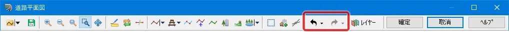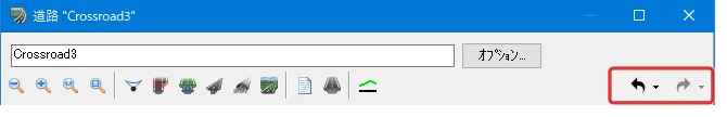 メニュー「ホーム」-「編集」の「道路平面図」、または、リボンメニュー「編集」-「シーン」の「道路平面図」で開いた「道路平面図」で見たい範囲を拡大したいとき、マウスのホイールを前に回すとズームアップされます。ホイールを後ろに回すと縮小されます。