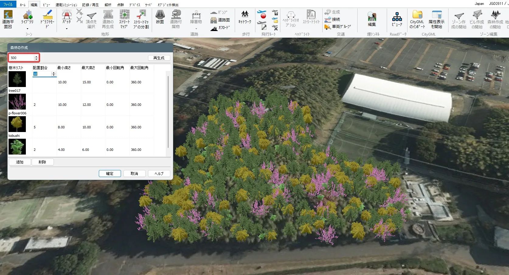オブジェクトはモデルや樹木を指定できます。