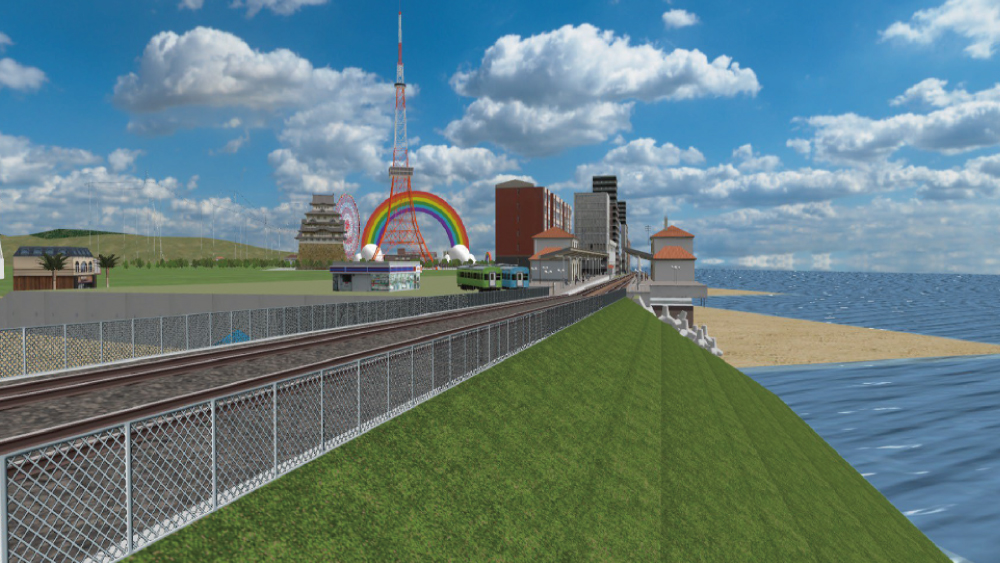まず大きな東京タワーが目に入るきれいな空間づくりが素敵ですね。電車に乗ると、遠く山につづく線路があり、キャンプ場にまで繋がっています。街から山へアクセスがしやすくなって、駅からすぐにキャンプも楽しめそうですね。線路は海沿いを走るよう線形に工夫がされています。作者は鉄道が好きということで、沿線の景色を楽しみながら電車で走ることができるんですよ。