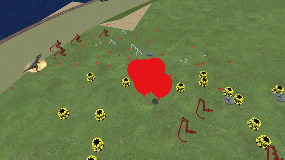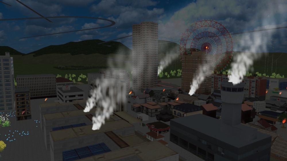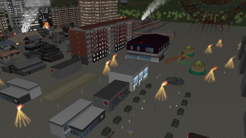モデル配置、飛行ルート、道路、炎、歩行者ネットワーク