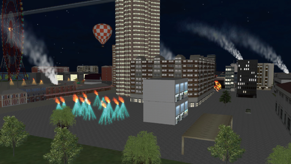 炎、時間と照明、ブルーム、モデル配置、水面、飛行ルート