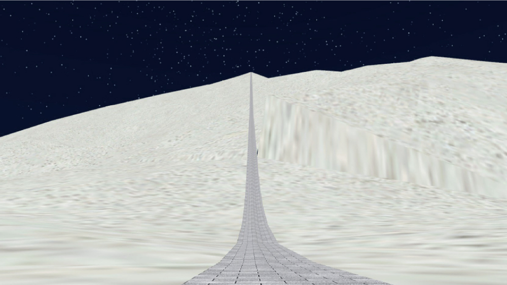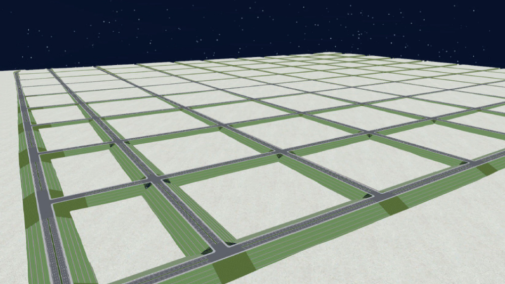 月面に新たに道路をひくのなら何もないからこそグリッドがきれいな道を作れますね。クールな道とシンプルに表現された空間が月の静けさを表現しています。山に登ることができる小道も月からの広大な景色を見るのに最適です。整然と広がる格子状の道路網が、これからの都市の発展を待ち構えています。