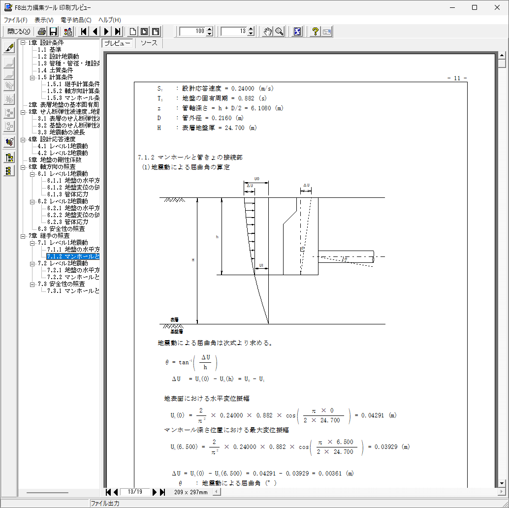 下水道管本体鉛直断面、軸方向、管きょの接合部の耐震計算プログラム