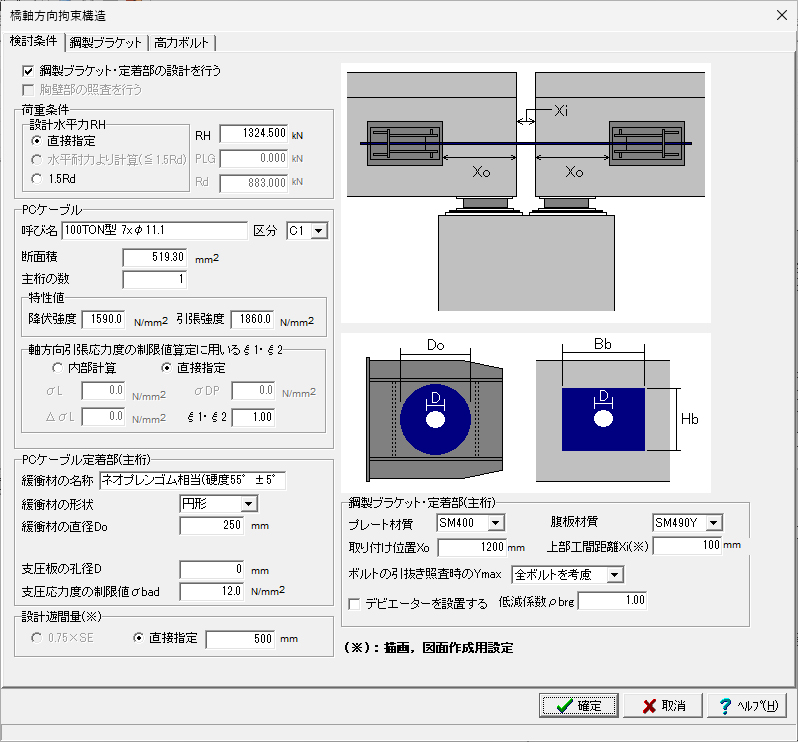 ◦アンカーバーの照査に対応しています。橋軸方向および直角方向についての検討が可能です。