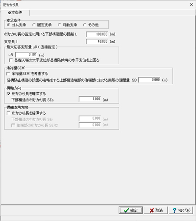 桁かかり長、縁端拡幅、落橋防止構造、変位制限構造の照査に対応した落橋防止システムの設計計算