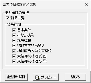 - 2.入力データ、基本条件出力において、落橋防止構造の種類や震度データを追加