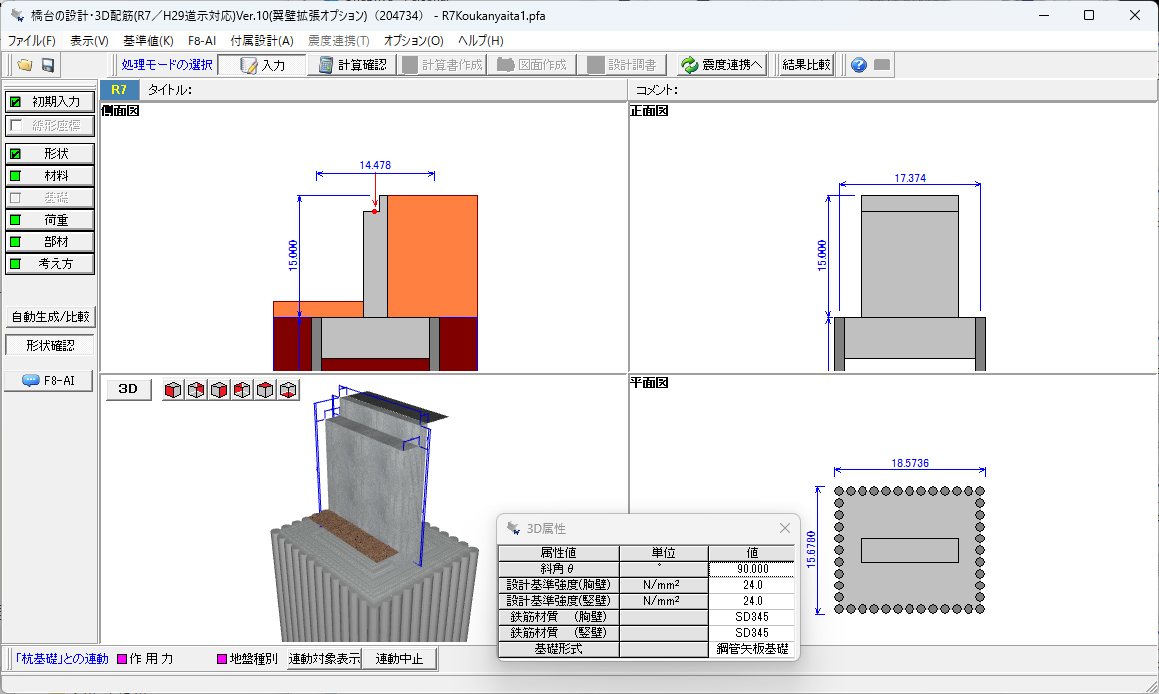 4. 基礎の設計・3D配筋」、「震度算出(支承設計)」との連動対応