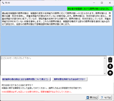 また、令和7年道路橋示方書・同解説の改定内容を新たに取り込み、機能強化を行っています。改定の内容の要約や各規定の概要など、書籍を直接参照することなく幅広いご質問に対して自動的に対応することが可能です。