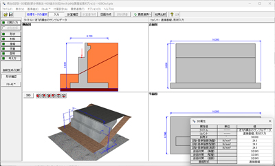 逆T式橋台、重力式橋台の設計計算、図面作成プログラム。