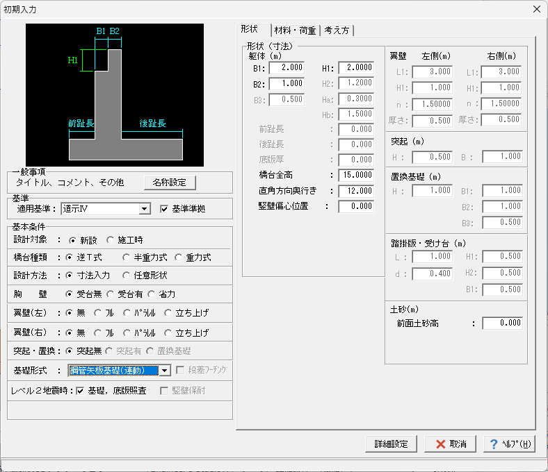 逆T式橋台、重力式橋台の設計計算、図面作成プログラム