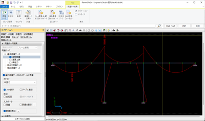 Enginner's Studio® 面内は、任意形状平面骨組みに対する面内荷重載荷に特化した2次元線形弾性解析プログラムです。ユーザインターフェースは3次元非線形解析プログラム「Engineer's Studio®」を踏襲しておりますので、違和感なく立体解析へ移行できます。