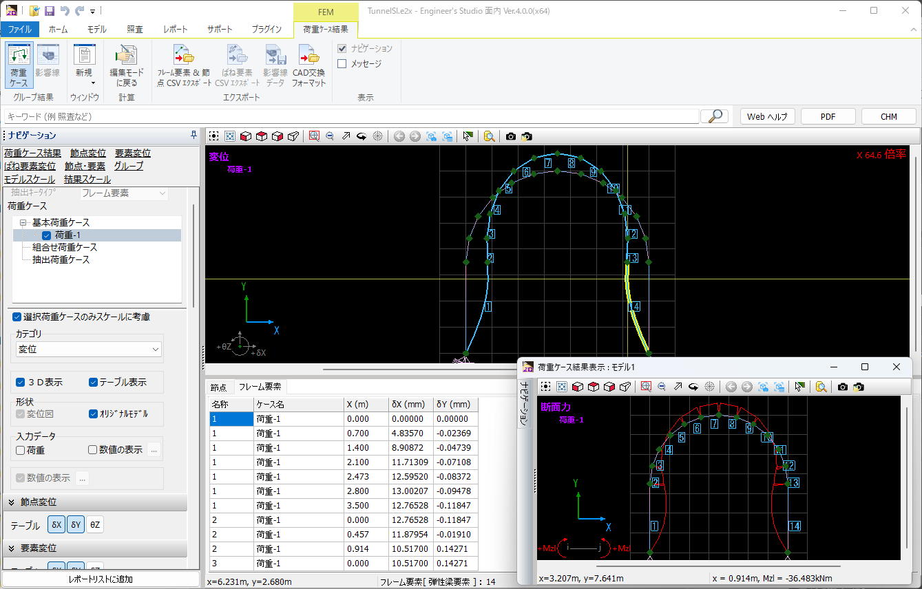 ▲トンネルモデルデータ構造図+変位図
