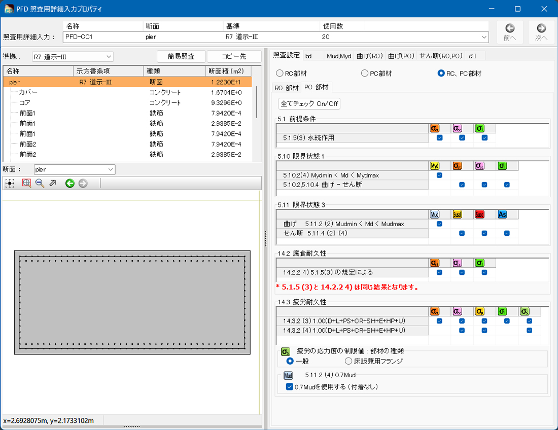 また、断面照査ではコンクリート標準示方書の限界状態設計法にも対応しており、構造物の照査まで可能です。