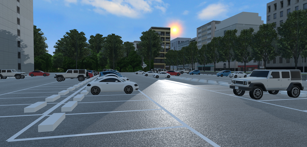 リアルタイムでの時間、天候、ライトなどの制御や、フェイクライト機能による昼夜間表現、影の投影も可能。交通量、車輌プロファイル、信号設定に基づく交通流生成や災害、事故による道路通行障害もシミュレートが可能。