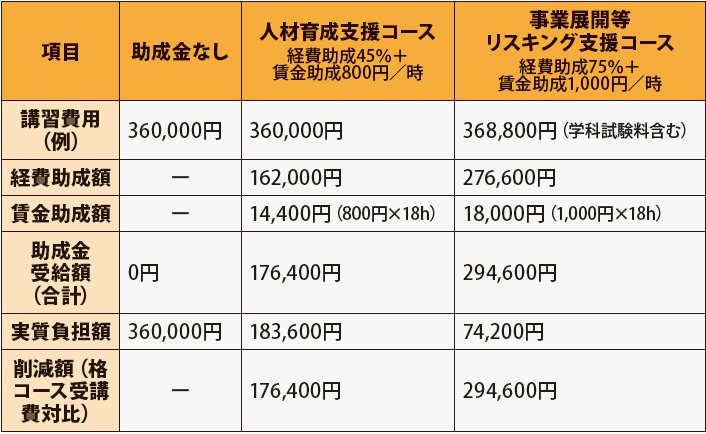 • 上記は例示(企業規模・訓練時間・対象経費・審査結果等により変動します)。