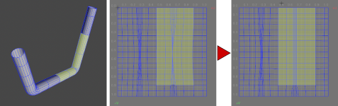 上面、底面のない円柱やパイプなどのUVを境界稜線のうち、最もUV原点に近いものを基準に整列します。