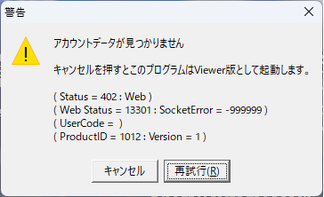 図1 ライセンスがありません 図2 アカウントデータが見つかりません