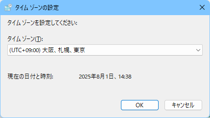 日本国内での使用であれば一般に「(UTC+09:00) 大阪、札幌、東京」を選択します。