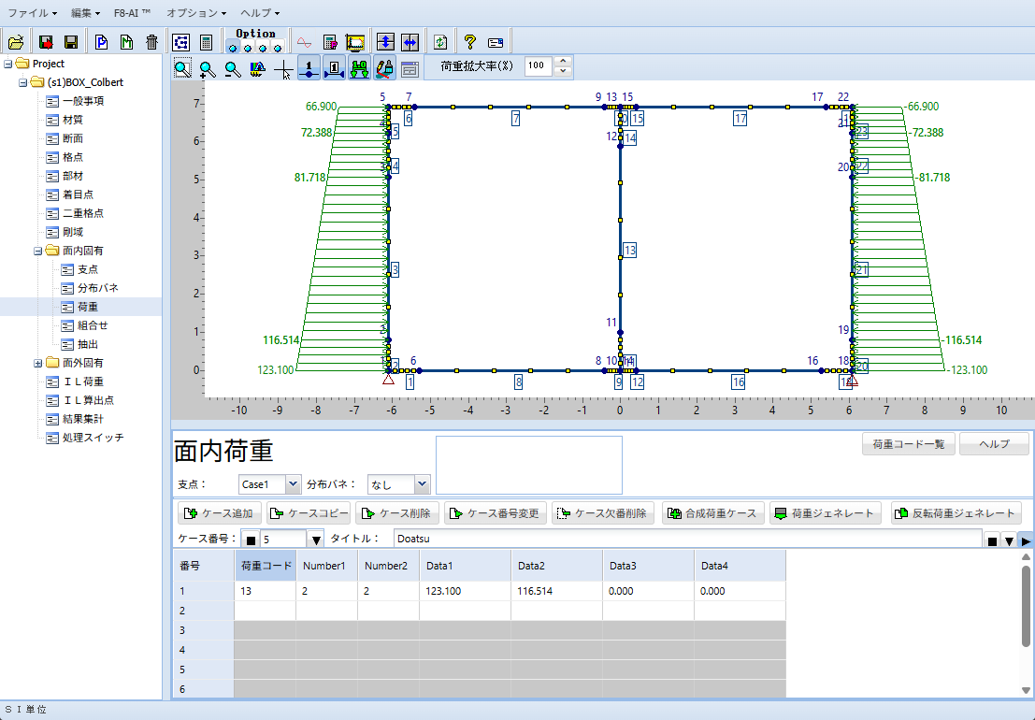 面外解析分布荷重、集中荷重、格点集中荷重、支点強制変位、プレストレス荷重