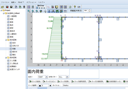 平面骨組みモデル化された任意構造物の断面力、反力、変位を算出するための構造解析プログラム