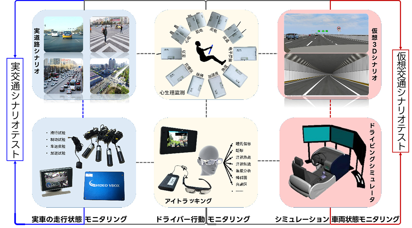 研究の深化に伴い、研究チームは運転者行動のモニタリング、実路での車両テストの面で堅固なハードウェアの基盤とデータ収集能力を蓄積し、交通行動・安全研究プラットフォームのプロトタイプを構築しました。この研究の過程で、実際の運転行動データ、車両運行データおよび、再現性が高く現実に即した運転環境を、高い自由度で統合し実験を行うための手法という、核心的な課題に直面したのです。