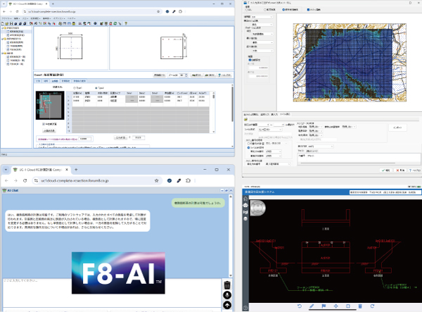 近年頻発する線状降水帯やゲリラ豪雨による水害への備えとして、河道の一次元不定流計算と氾濫原の二次元浸水氾濫解析により洪水浸水想定区域図が可能な新製品「浸水氾濫解析システム」をデモンストレーションを交えて紹介します。また急速に進むAI・Cloud化に対応する最新情報として、全製品で対応を進めているF8-AI™ UCサポート/AI チャットでの設計サポート機能、UC-1シリーズの完全Cloud化第1弾となるUC-1 Cloud RC断面計算(旧基準)Complete、タブレット入力対応の橋梁点検支援システムについてデモンストレーションを交えてご紹介いたします。