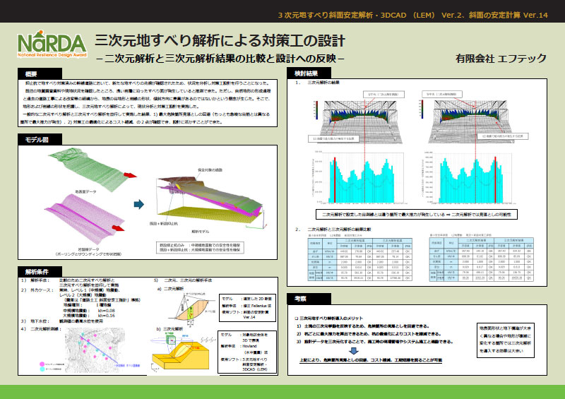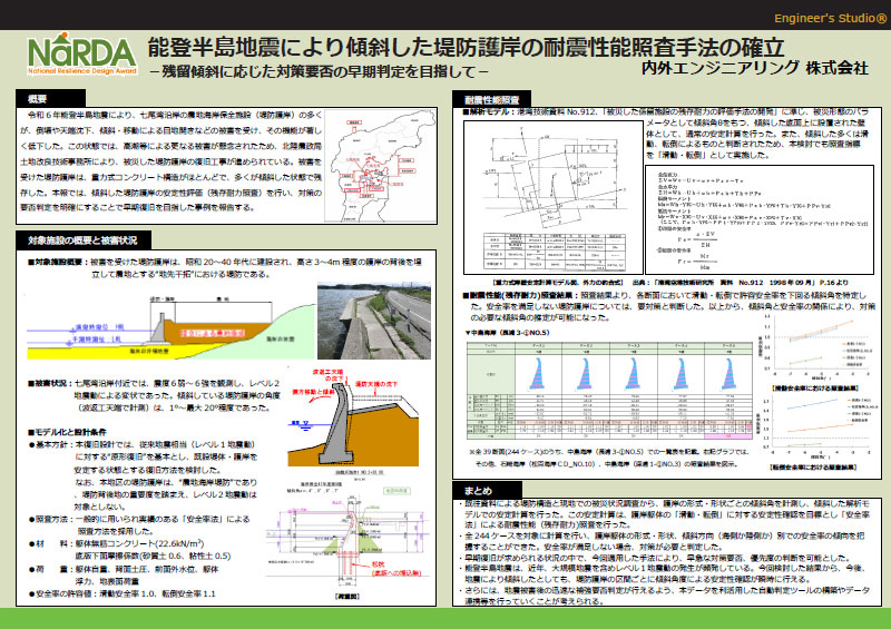 設計/解析に限らず、減災への提言、合理的な設計法提案、BCP、リスクマネジメントなど、直接的・間接的に国土強靭化に資する内容である作品
