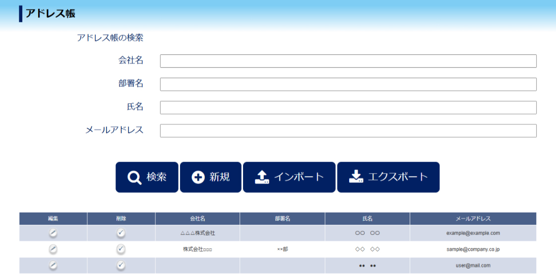 ▲アドレス帳管理画面