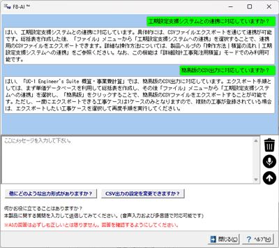 また、国土交通省が提供する工程表作成支援ツール「工期設定支援システムVer.3.0」に対して、本機能で算定した日当り作業量の情報を付加した「工程計画情報CSV(簡易版)」のエクスポートにも対応しています。