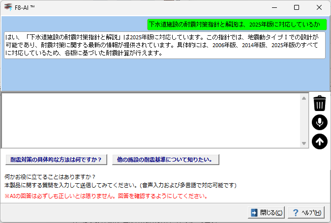 「下水道施設の耐震対策指針と解説-2025年版-」(以下、下水道施設2025)が発刊されたのに伴い、適用基準に下水道施設2025を追加し、以下の項目に対応いたしました。