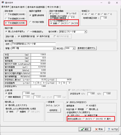 • 下水道施設の耐震対策指針と解説において、2014年版と2006年版の基準選択可能。