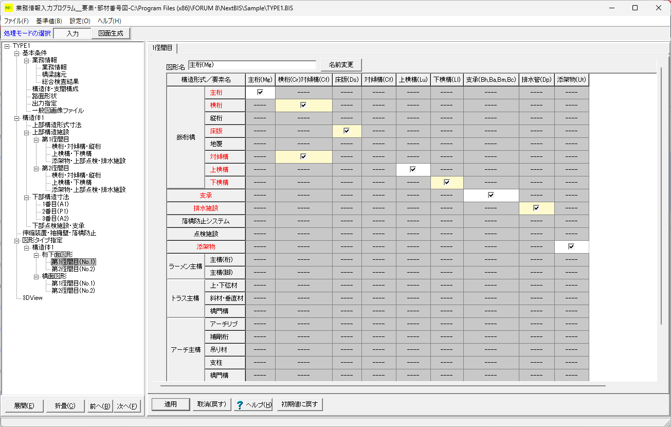 現在、形状図形をDXFやDWGで読み込んで、その図形に含まれる要素(主桁や横桁など)を選択し、本システムで扱うためのレイヤ構成を自動で作成するツールを開発中です。