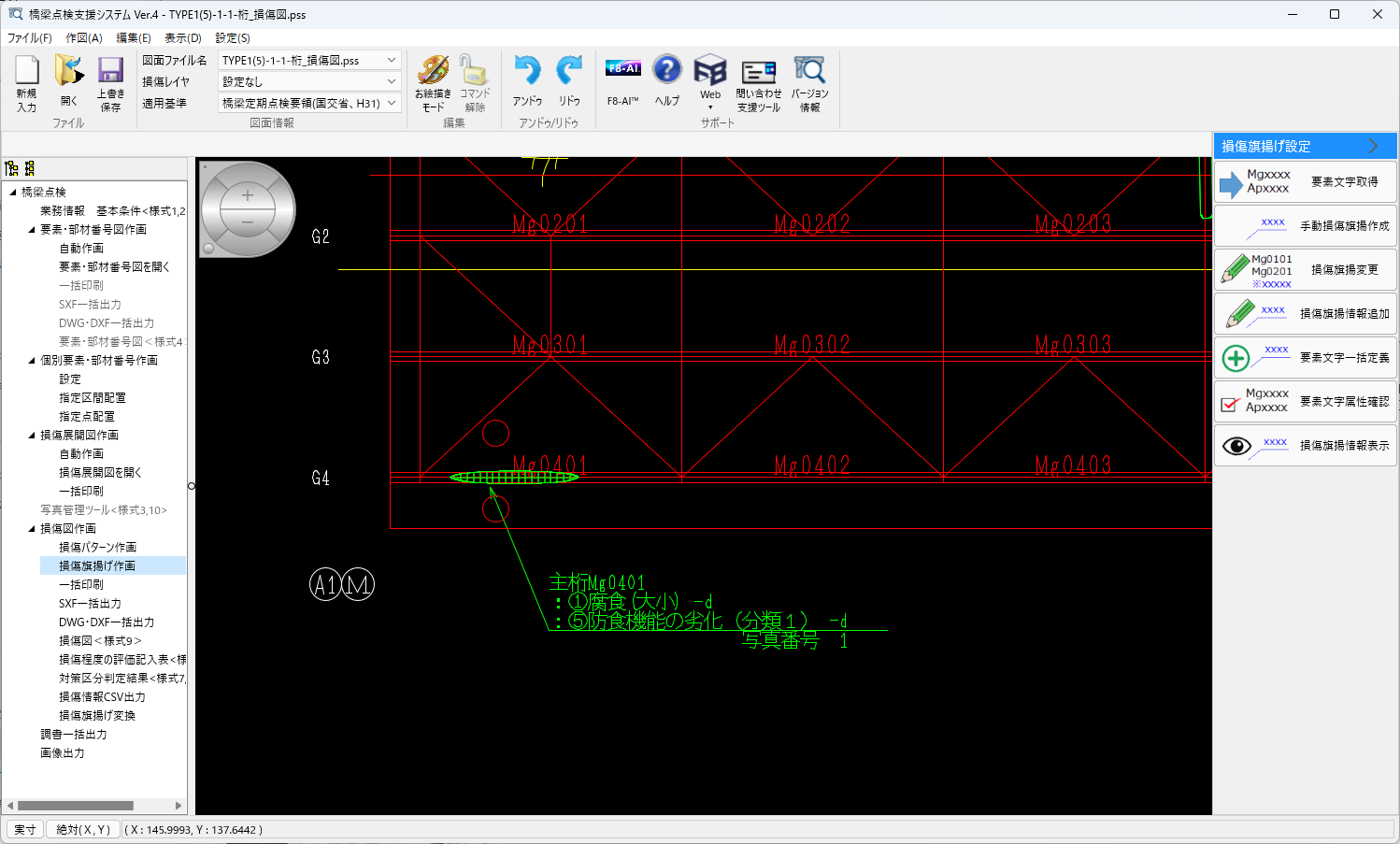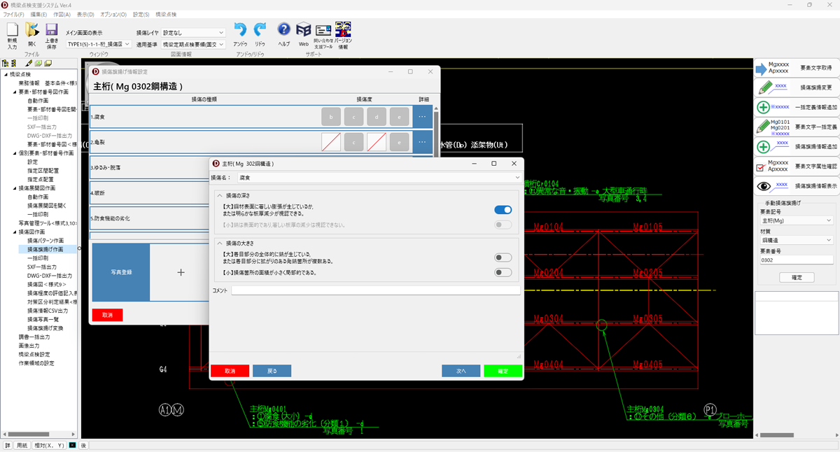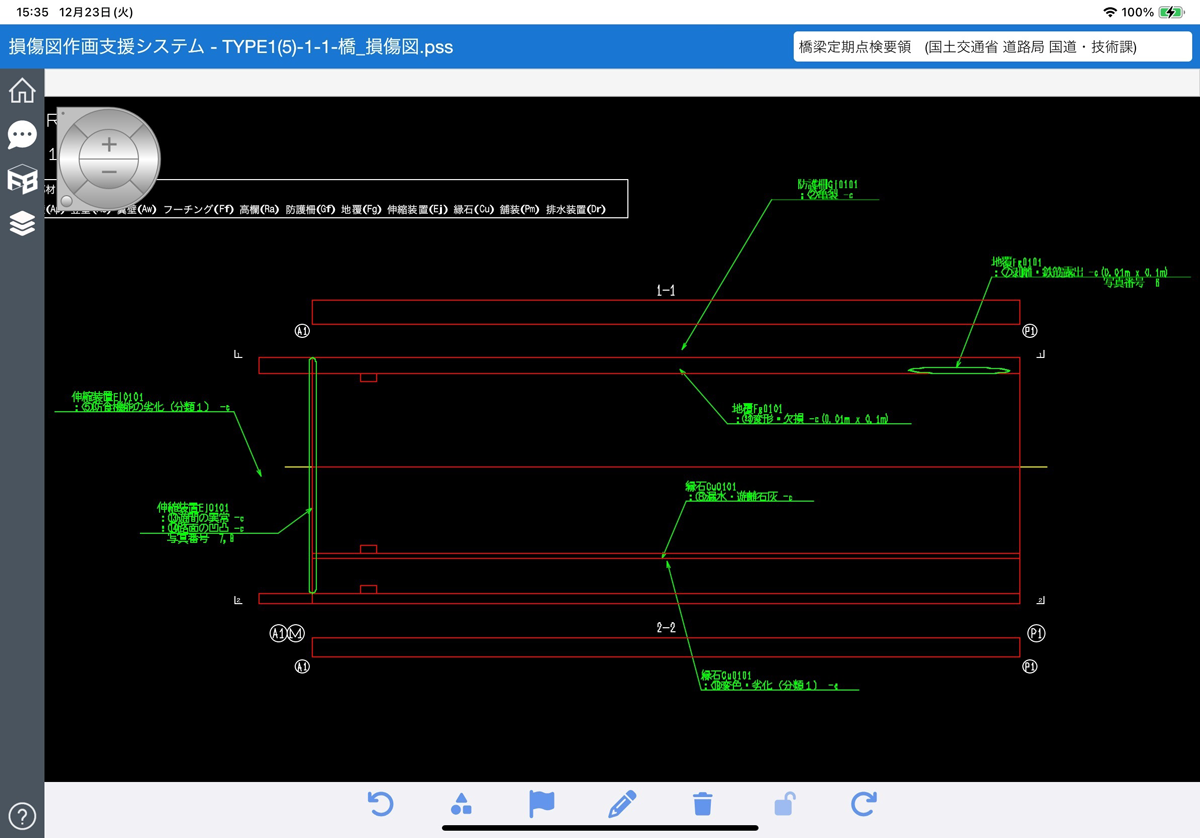 • 損傷パターン・旗揚げの作画機能と損傷図面の出力(点検調書(その5))