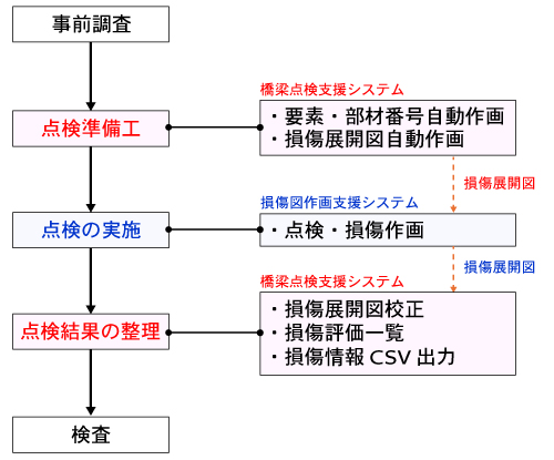 各種点検調書と、部材図・損傷図を作画するシステム