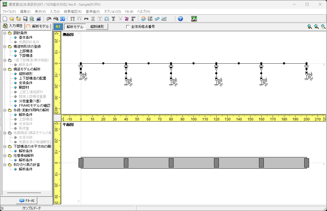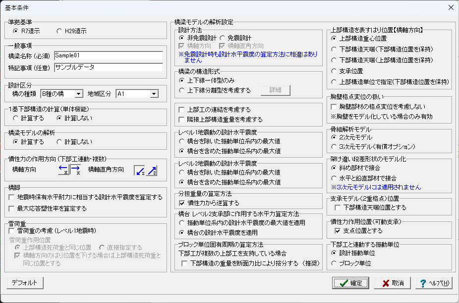 - 橋梁モデル解析:上部構造と下部構造の組み合わせにより、橋梁モデルの解析(固有周期、設計水平震度、分担重量、下部構造に作用する慣性力)に対応