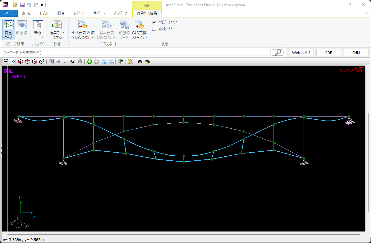 ▲アーチ橋モデルデータ変位図
