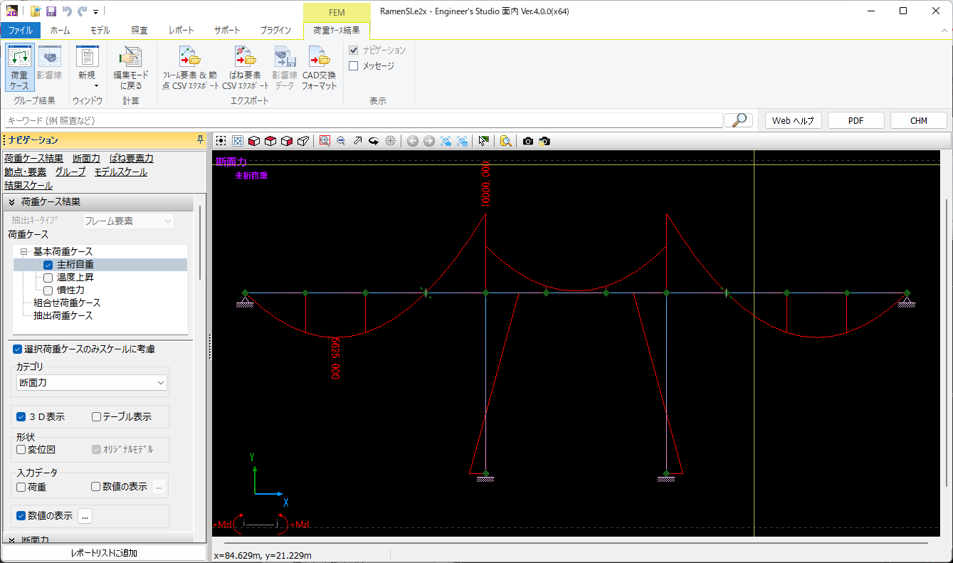 ▲ラーメン橋モデルデータ変位図+断面力図